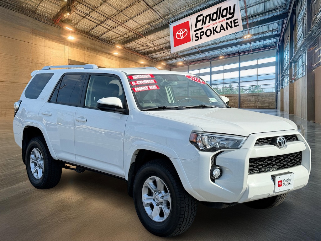 Findlay Downtown Toyota Spokane proudly presents this Toyota 4Runner with only 109500 miles. All of our cars are hand picked and inspected for your peace of mind. This 4Runner is equipped with the following options: Toyota Silver Certified Certified, 4WD, 3.727 Axle Ratio, 4-Wheel Disc Brakes, ABS brakes, Air Conditioning, Alloy wheels, AM/FM radio: SiriusXM, Anti-whiplash front head restraints, Brake assist, Bumpers: body-color, CD player, Driver door bin, Driver vanity mirror, Dual front impact airbags, Dual front side impact airbags, Electronic Stability Control, Emergency communication system: Safety Connect, Exterior Parking Camera Rear, Front anti-roll bar, Front Bucket Seats, Front Center Armrest, Front fog lights, Front reading lights, Front wheel independent suspension, Heated door mirrors, Illuminated entry, Knee airbag, Leather Shift Knob, Low tire pressure warning, Occupant sensing airbag, Outside temperature display, Overhead airbag, Overhead console, Panic alarm, Passenger door bin, Passenger vanity mirror, Power door mirrors, Power driver seat, Power steering, Power windows, Rear anti-roll bar, Rear seat center armrest, Rear window defroster, Rear window wiper, Remote keyless entry, Roof rack: rails only, Security system, Speed control, Speed-sensing steering, Split folding rear seat, Spoiler, Steering wheel mounted audio controls, Tachometer, Telescoping steering wheel, Tilt steering wheel, Traction control, Trip computer, and Variably intermittent wipers.
