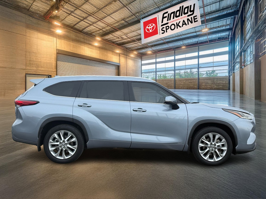 Findlay Downtown Toyota Spokane proudly presents this Toyota Highlander Hybrid with only 49011 miles. All of our cars are hand picked and inspected for your peace of mind. This Highlander Hybrid is equipped with the following options: Toyota Certified Used Hybrids Certified, 2.5L I4 PDI Hybrid DOHC 16V LEV3-SULEV30 186hp, 11 Speakers, 20" Chrome Wheels, 3rd row seats: split-bench, 4-Wheel Disc Brakes, ABS brakes, Air Conditioning, Alloy wheels, AM/FM radio: SiriusXM, Apple CarPlay/Android Auto, Auto High-beam Headlights, Auto-dimming Rear-View mirror, Automatic temperature control, Axle Ratio TBD, Brake assist, Bumpers: body-color, Chrome wheels, Delay-off headlights, Driver door bin, Driver vanity mirror, Dual front impact airbags, Dual front side impact airbags, Electronic Stability Control, Emergency communication system: Safety Connect with 1-year trial, Exterior Parking Camera Rear, Four wheel independent suspension, Front anti-roll bar, Front Bucket Seats, Front Center Armrest, Front dual zone A/C, Front fog lights, Front reading lights, Fully automatic headlights, Garage door transmitter: HomeLink, Heated door mirrors, Heated Front Bucket Seats, Heated front seats, Heated steering wheel, Illuminated entry, Knee airbag, Leather Seat Trim, Leather Shift Knob, Low tire pressure warning, Memory seat, Navigation system: Dynamic Navigation (3-year trial), Occupant sensing airbag, Outside temperature display, Overhead airbag, Overhead console, Panic alarm, Passenger door bin, Passenger vanity mirror, Power door mirrors, Power driver seat, Power Liftgate, Power moonroof, Power passenger seat, Power steering, Power windows, Radio: JBL Premium Audio System, Rear air conditioning, Rear anti-roll bar, Rear reading lights, Rear window defroster, Rear window wiper, Reclining 3rd row seat, Remote keyless entry, Roof rack: rails only, Security system, Speed control, Speed-sensing steering, Split folding rear seat, Spoiler, Steering wheel mounted audio controls, Telescoping steering wheel, Tilt steering wheel, Traction control, Trip computer, Turn signal indicator mirrors, Variably intermittent wipers, and Ventilated front seats.