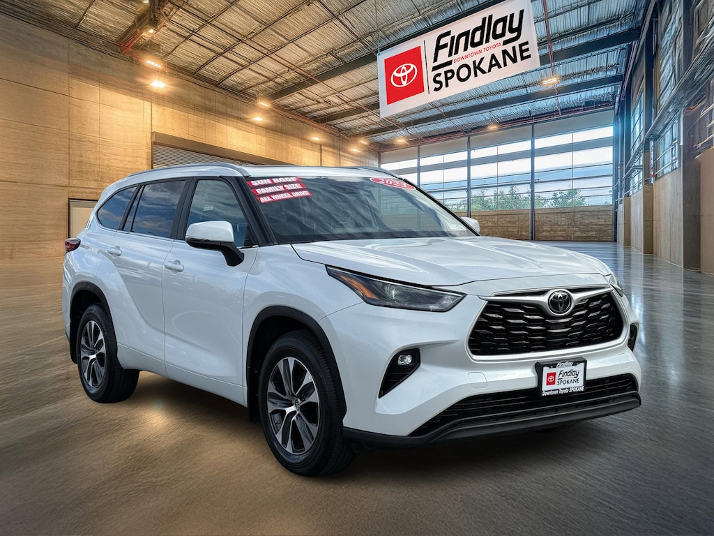 Findlay Downtown Toyota Spokane proudly presents this Toyota Highlander with only 46603 miles. All of our cars are hand picked and inspected for your peace of mind. This Highlander is equipped with the following options: Toyota Gold Certified Certified, AWD, ABS brakes, Active Cruise Control, Alloy wheels, Electronic Stability Control, Front dual zone A/C, Heated door mirrors, Heated Front Bucket Seats, Heated front seats, Illuminated entry, Low tire pressure warning, Power Liftgate, Power moonroof, Remote keyless entry, Traction control, 3.329 Axle Ratio, 3rd row seats: split-bench, 4-Wheel Disc Brakes, 6 Speakers, Air Conditioning, AM/FM radio: SiriusXM, Apple CarPlay/Android Auto, Auto High-beam Headlights, Auto-dimming Rear-View mirror, Automatic temperature control, Brake assist, Bumpers: body-color, Delay-off headlights, Driver door bin, Driver vanity mirror, Dual front impact airbags, Dual front side impact airbags, Emergency communication system: Safety Connect (up to 10-year trial subscription), Exterior Parking Camera Rear, Four wheel independent suspension, Front anti-roll bar, Front Bucket Seats, Front Center Armrest, Front fog lights, Front reading lights, Fully automatic headlights, Garage door transmitter: HomeLink, Knee airbag, Leather Shift Knob, Leather steering wheel, Occupant sensing airbag, Outside temperature display, Overhead airbag, Overhead console, Panic alarm, Passenger door bin, Passenger vanity mirror, Power door mirrors, Power driver seat, Power passenger seat, Power steering, Power windows, Radio: 8" Toyota Audio Multimedia, Rear air conditioning, Rear anti-roll bar, Rear reading lights, Rear window defroster, Rear window wiper, Reclining 3rd row seat, Roof rack: rails only, Security system, SofTex Seat Trim, Speed control, Speed-sensing steering, Split folding rear seat, Spoiler, Steering wheel mounted audio controls, Tachometer, Telescoping steering wheel, Tilt steering wheel, Trip computer, Turn signal indicator mirrors, Variably intermittent wipers, and Wheels: 18" Machined-Finish Alloy.