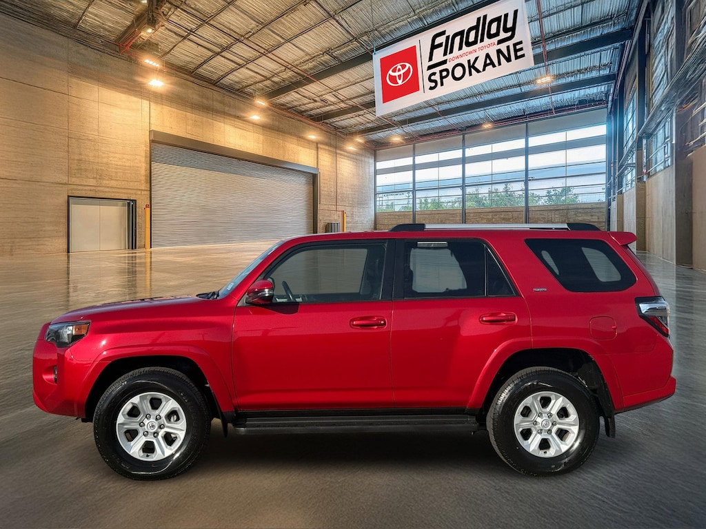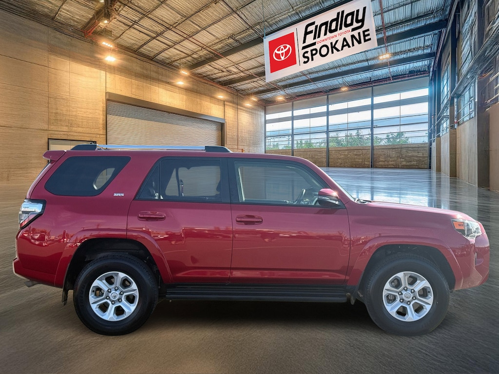 Findlay Downtown Toyota Spokane proudly presents this Toyota 4Runner with only 27261 miles. All of our cars are hand picked and inspected for your peace of mind. This 4Runner is equipped with the following options: Toyota Gold Certified Certified, 4WD, Black Artificial Leather, 17" 6-Spoke Alloy Wheels, 3.727 Axle Ratio, 4-Wheel Disc Brakes, 8 Speakers, ABS brakes, Air Conditioning, Alloy wheels, AM/FM radio: SiriusXM, Anti-whiplash front head restraints, Apple CarPlay/Android Auto, Auto High-beam Headlights, Auto-dimming Rear-View mirror, Brake assist, Bumpers: body-color, Compass, Driver door bin, Driver vanity mirror, Dual front impact airbags, Dual front side impact airbags, Electronic Stability Control, Emergency communication system: Safety Connect (1-year trial), Exterior Parking Camera Rear, Front anti-roll bar, Front Bucket Seats, Front Center Armrest, Front fog lights, Front reading lights, Front wheel independent suspension, Garage Door Opener, Garage door transmitter: HomeLink, Heated door mirrors, Heated Front Bucket Seats, Heated front seats, Heated Outside Rear-View Mirrors, Heated steering wheel, Illuminated entry, Knee airbag, Leather Shift Knob, Leather steering wheel, Low tire pressure warning, Navigation System, Occupant sensing airbag, Outside temperature display, Overhead airbag, Overhead console, Panic alarm, Passenger door bin, Passenger vanity mirror, Power door mirrors, Power driver seat, Power passenger seat, Power steering, Power windows, Radio: Premium Audio, Rear anti-roll bar, Rear seat center armrest, Rear window defroster, Rear window wiper, Remote keyless entry, Security system, SofTex Seat Trim, Speed control, Speed-sensing steering, Split folding rear seat, Spoiler, Steering wheel mounted audio controls, Tachometer, Telescoping steering wheel, Tilt steering wheel, Traction control, Trip computer, Turn signal indicator mirrors, and Variably intermittent wipers.