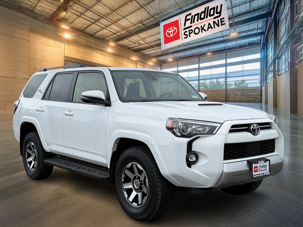 Findlay Downtown Toyota Spokane proudly presents this Toyota 4Runner with only 40627 miles. All of our cars are hand picked and inspected for your peace of mind. This 4Runner is equipped with the following options: Toyota Gold Certified Certified, 4WD, Black/Graphite w/Leather Seat Trim, 3.727 Axle Ratio, 4-Wheel Disc Brakes, 8 Speakers, ABS brakes, Air Conditioning, Alloy wheels, AM/FM radio: SiriusXM, Anti-whiplash front head restraints, Apple CarPlay/Android Auto, Auto High-beam Headlights, Auto-dimming Rear-View mirror, Black Roof Rails, Brake assist, Bumpers: body-color, Compass, Driver door bin, Driver vanity mirror, Dual front impact airbags, Dual front side impact airbags, Electronic Stability Control, Emergency communication system: Safety Connect (1-year trial), Exterior Parking Camera Rear, Front anti-roll bar, Front Bucket Seats, Front Center Armrest, Front fog lights, Front reading lights, Front wheel independent suspension, Garage Door Opener, Garage door transmitter: HomeLink, Heated door mirrors, Heated Front Bucket Seats, Heated front seats, Heated Outside Rear-View Mirrors, Heated steering wheel, Illuminated entry, Knee airbag, Leather Shift Knob, Low tire pressure warning, Navigation System, Occupant sensing airbag, Outside temperature display, Overhead airbag, Overhead console, Panic alarm, Passenger door bin, Passenger vanity mirror, Power door mirrors, Power driver seat, Power passenger seat, Power steering, Power windows, Radio: Premium Audio, Rear anti-roll bar, Rear seat center armrest, Rear window defroster, Rear window wiper, Remote keyless entry, Security system, SofTex Seat Trim, Speed control, Speed-sensing steering, Split folding rear seat, Spoiler, Steering wheel mounted audio controls, Tachometer, Telescoping steering wheel, Tilt steering wheel, Traction control, Trip computer, Turn signal indicator mirrors, Variably intermittent wipers, and Wheels: 17" Unique 7-Spoke Off-Road Alloy.