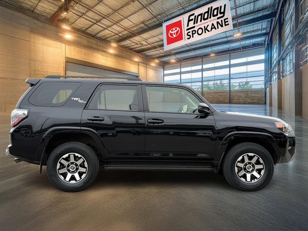 Findlay Downtown Toyota Spokane proudly presents this Toyota 4Runner with only 37257 miles. All of our cars are hand picked and inspected for your peace of mind. This 4Runner is equipped with the following options: 4Runner TRD Off-Road, Toyota Gold Certified Certified, 4WD, Black, Black Cloth, 3.727 Axle Ratio, 4-Wheel Disc Brakes, 8 Speakers, ABS brakes, Air Conditioning, Alloy wheels, AM/FM radio: SiriusXM, Anti-whiplash front head restraints, Apple CarPlay/Android Auto, Auto High-beam Headlights, Black Roof Rails, Brake assist, Bumpers: body-color, Compass, Driver door bin, Driver vanity mirror, Dual front impact airbags, Dual front side impact airbags, Electronic Stability Control, Emergency communication system: Safety Connect (1-year trial), Exterior Parking Camera Rear, Fabric Seat Trim, Front anti-roll bar, Front Bucket Seats, Front Center Armrest, Front fog lights, Front reading lights, Front wheel independent suspension, Heated door mirrors, Illuminated entry, Knee airbag, Leather Shift Knob, Low tire pressure warning, Occupant sensing airbag, Outside temperature display, Overhead airbag, Overhead console, Panic alarm, Passenger door bin, Passenger vanity mirror, Power door mirrors, Power driver seat, Power steering, Power windows, Radio: Audio Plus, Rear anti-roll bar, Rear seat center armrest, Rear window defroster, Rear window wiper, Remote keyless entry, Security system, Speed control, Speed-sensing steering, Split folding rear seat, Spoiler, Steering wheel mounted audio controls, Tachometer, Telescoping steering wheel, Tilt steering wheel, Traction control, Trip computer, Variably intermittent wipers, and Wheels: 17" Unique 7-Spoke Off-Road Alloy.