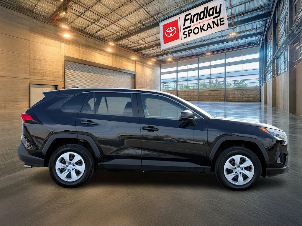 Findlay Downtown Toyota Spokane proudly presents this Toyota RAV4 with only 25932 miles. All of our cars are hand picked and inspected for your peace of mind. This RAV4 is equipped with the following options: Toyota Gold Certified Certified, AWD, Black Cloth, 17" Steel Wheels, 4-Wheel Disc Brakes, 6 Speakers, ABS brakes, Air Conditioning, AM/FM radio: SiriusXM, Auto High-beam Headlights, Brake assist, Bumpers: body-color, Driver door bin, Driver vanity mirror, Dual front impact airbags, Dual front side impact airbags, Electronic Stability Control, Emergency communication system: Safety Connect (10-year trial), Exterior Parking Camera Rear, Fabric Seat Trim, Four wheel independent suspension, Front anti-roll bar, Front Bucket Seats, Front Center Armrest, Front reading lights, Illuminated entry, Knee airbag, Low tire pressure warning, Occupant sensing airbag, Outside temperature display, Overhead airbag, Overhead console, Panic alarm, Passenger door bin, Passenger vanity mirror, Power door mirrors, Power steering, Power windows, Radio data system, Radio: AM/FM/XM Audio System, Rear anti-roll bar, Rear seat center armrest, Rear window defroster, Rear window wiper, Remote keyless entry, Speed control, Speed-sensing steering, Split folding rear seat, Spoiler, Steering wheel mounted audio controls, Tachometer, Telescoping steering wheel, Tilt steering wheel, Traction control, and Trip computer.