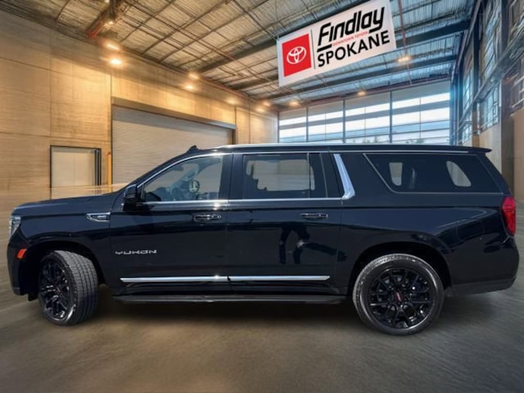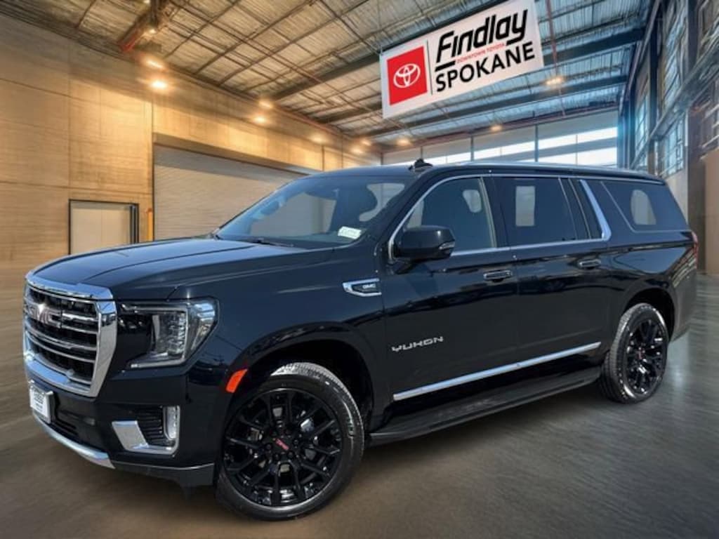 Findlay Downtown Toyota Spokane proudly presents this GMC Yukon XL with only 47605 miles. All of our cars are hand picked and inspected for your peace of mind. This Yukon XL is equipped with the following options: License Plate Front Mounting Package, Preferred Equipment Group 4SA (2 Presets For Power Driver Seat, Bose 9-Speaker Stereo Audio System Feature, Bright Chrome Bodyside Moldings, Bright Front & Rear Door Sill Plates, Chrome Door Handles w/Body-Color Strip, Hands-Free Power Programmable Rear Liftgate, Heated & Ventilated Driver & Front Passenger Seats, Heated Driver & Front Passenger Seats, Inside Rear-View Auto-Dimming Mirror, Safety Alert Seat, Universal Home Remote, and Wireless Charging), SLT Luxury Package (2 Presets For Outside Rearview Mirrors, 3rd Row 60/40 Power-Folding Split-Bench Seat, Adaptive Cruise Control, Enhanced Automatic Emergency Braking, HD Surround Vision, Heated 2nd Row Outboard Position Seats, Heated Steering Wheel, Outside Heated Power-Adjustable Mirrors, Power Release 2nd Row 60/40 Split-Folding Bench Seat, Power Tilt & Telescopic Steering Column, and Rear Pedestrian Alert), SLT Premium Package (Dual-Pane Panoramic Power Sunroof), Yukon XL SLT, 4WD, Onyx Black, Jet Black Leather, 3.23 Rear Axle Ratio, 3rd row seats: split-bench, 4-Wheel Disc Brakes, 9 Speakers, ABS brakes, Air Conditioning, Alloy wheels, AM/FM radio: SiriusXM with 360L, AM/FM Stereo, Apple CarPlay/Android Auto, Auto High-beam Headlights, Auto-dimming Rear-View mirror, Automatic Emergency Braking, Automatic temperature control, Bodyside moldings, Brake assist, Bumpers: body-color, Compass, Delay-off headlights, Driver door bin, Driver vanity mirror, Dual front impact airbags, Dual front side impact airbags, Electronic Stability Control, Emergency communication system: OnStar and GMC connected services capable, Following Distance Indicator, Forward Collision Alert, Four wheel independent suspension, Front & Rear Park Assist, Front anti-roll bar, Front Bucket Seats, Front Center Armrest, Front dual zone A/C, Front fog lights, Front Pedestrian Braking, Front reading lights, Fully automatic headlights, Garage door transmitter, Heated door mirrors, Heated front seats, Illuminated entry, IntelliBeam Automatic High Beam On/Off, Lane Change Alert w/Side Blind Zone Alert, Lane Keep Assist w/Lane Departure Warning, Low tire pressure warning, Memory seat, Navigation System, Occupant sensing airbag, Outside temperature display, Overhead airbag, Overhead console, Panic alarm, Passenger door bin, Passenger vanity mirror, Perforated Leather-Appointed Seating, Power door mirrors, Power driver seat, Power Liftgate, Power passenger seat, Power Release 2nd Row Bucket Seats, Power steering, Power windows, Premium Smooth Ride Suspension, Rain sensing wipers, Rear air conditioning, Rear anti-roll bar, Rear Cross Traffic Alert, Rear reading lights, Rear seat center armrest, Rear window defroster, Rear window wiper, Remote keyless entry, Roof rack: rails only, Security system, SiriusXM w/360L, Speed control, Speed-sensing steering, Split folding rear seat, Spoiler, Steering wheel mounted audio controls, Tachometer, Telescoping steering wheel, Tilt steering wheel, Traction control, Trip computer, Variably intermittent wipers, Ventilated front seats, Voltmeter, Wheels: 20" x 9" 6-Spoke Polished Aluminum, Wheels: 22" Multi-Spoke Gloss Black (LPO) (SRV), and Wheels: 22" x 9" Steel Interim (LPO)