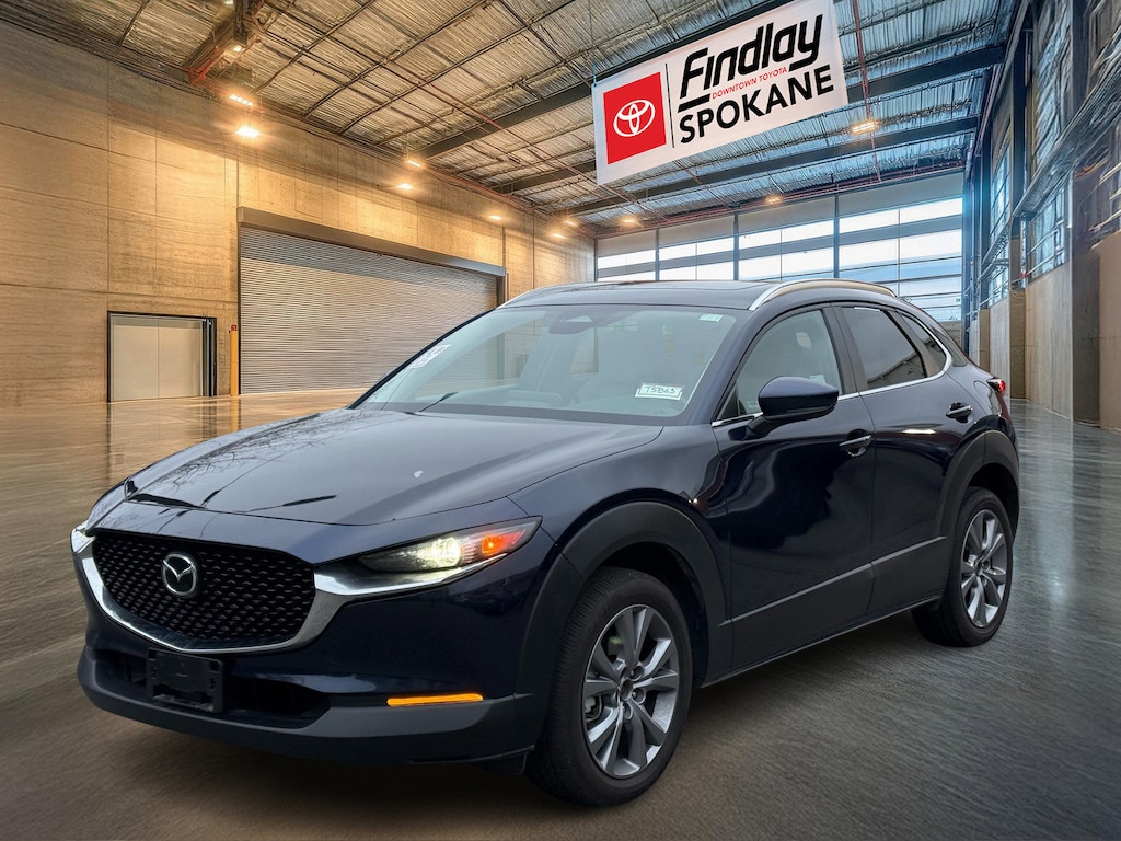 Findlay Downtown Toyota Spokane proudly presents this Mazda CX-30 with only 31777 miles. All of our cars are hand picked and inspected for your peace of mind. This CX-30 is equipped with the following options: 4-Wheel Disc Brakes, 6 Speakers, ABS brakes, Air Conditioning, Alloy wheels, AM/FM radio, AppLink/Apple CarPlay and Android Auto, Auto High-beam Headlights, Automatic temperature control, Brake assist, Bumpers: body-color, Cargo Cover, Cargo Tray, Compass, Delay-off headlights, Driver door bin, Driver vanity mirror, Dual front impact airbags, Dual front side impact airbags, Electronic Stability Control, Emergency communication system: Mazda Connected Services (3-year trial subscription included), Exterior Parking Camera Rear, Front anti-roll bar, Front Bucket Seats, Front Center Armrest, Front dual zone A/C, Front reading lights, Front wheel independent suspension, Fully automatic headlights, Heated door mirrors, Heated Front Bucket Seats, Heated front seats, Illuminated entry, Knee airbag, Leather Shift Knob, Leather steering wheel, Leatherette Seat Trim, Low tire pressure warning, MAZDA CONNECT Infotainment System, Memory seat, Occupant sensing airbag, Outside temperature display, Overhead airbag, Overhead console, Panic alarm, Passenger door bin, Passenger vanity mirror, Power door mirrors, Power driver seat, Power moonroof, Power steering, Power windows, Radio data system, Radio: AM/FM Audio System, Rain sensing wipers, Rear seat center armrest, Rear side impact airbag, Rear window defroster, Rear window wiper, Remote keyless entry, Speed control, Speed-sensing steering, Split folding rear seat, Spoiler, Stainless Steel Rear Bumper Guard, Steering wheel mounted audio controls, Tachometer, Telescoping steering wheel, Tilt steering wheel, Traction control, Trip computer, Turn signal indicator mirrors, Variably intermittent wipers, Wheel Locks, and Wheels: 18" x 7J Aluminum Alloy.