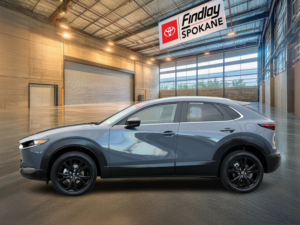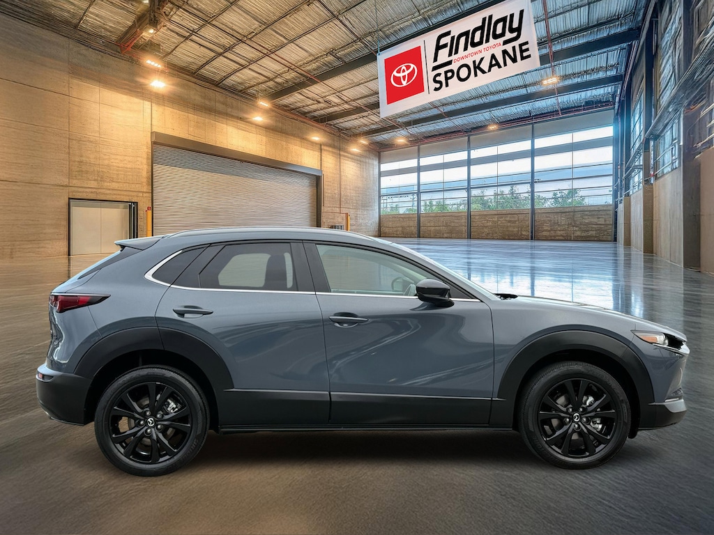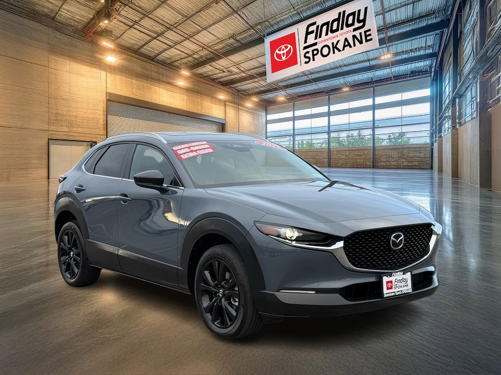Findlay Downtown Toyota Spokane proudly presents this Mazda CX-30 with only 20812 miles. All of our cars are hand picked and inspected for your peace of mind. This CX-30 is equipped with the following options: CX-30 2.5 S Carbon Edition, AWD, Gray Metallic, 4-Wheel Disc Brakes, 8 Speakers, ABS brakes, Air Conditioning, Alloy wheels, AM/FM radio, AppLink/Apple CarPlay and Android Auto, Auto High-beam Headlights, Automatic temperature control, Brake assist, Bumpers: body-color, Compass, Delay-off headlights, Driver door bin, Driver vanity mirror, Dual front impact airbags, Dual front side impact airbags, Electronic Stability Control, Emergency communication system: Mazda Connected Services (3-year trial subscription included), Exterior Parking Camera Rear, Front anti-roll bar, Front Bucket Seats, Front Center Armrest, Front dual zone A/C, Front reading lights, Front wheel independent suspension, Fully automatic headlights, Heated door mirrors, Heated Front Bucket Seats, Heated front seats, Illuminated entry, Knee airbag, Leather Seat Trim, Leather Shift Knob, Leather steering wheel, Low tire pressure warning, MAZDA CONNECT Infotainment System, Memory seat, Occupant sensing airbag, Outside temperature display, Overhead airbag, Overhead console, Panic alarm, Passenger door bin, Passenger vanity mirror, Power door mirrors, Power driver seat, Power moonroof, Power steering, Power windows, Radio data system, Radio: AM/FM/HD Audio System, Rain sensing wipers, Rear seat center armrest, Rear side impact airbag, Rear window defroster, Rear window wiper, Remote keyless entry, Speed control, Speed-sensing steering, Split folding rear seat, Spoiler, Steering wheel mounted audio controls, Tachometer, Telescoping steering wheel, Tilt steering wheel, Traction control, Trip computer, Turn signal indicator mirrors, Variably intermittent wipers, and Wheels: 18" x 7J Aluminum Alloy.