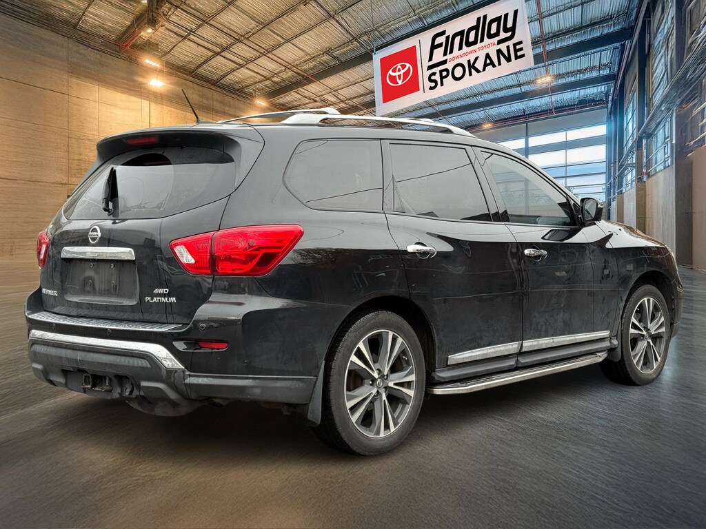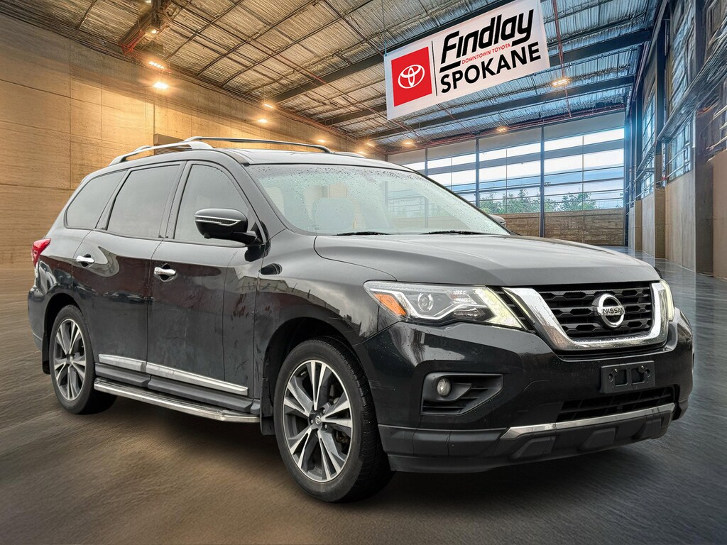 Findlay Downtown Toyota Spokane proudly presents this Nissan Pathfinder with only 117465 miles. All of our cars are hand picked and inspected for your peace of mind. This Pathfinder is equipped with the following options: Nissan Mobile Entertainment System Package (Dual 8" Headrest DVD FES), 4WD, 13 Speakers, 3rd row seats: bench, 4-Wheel Disc Brakes, 5.25 Axle Ratio, ABS brakes, Air Conditioning, Alloy wheels, AM/FM radio: SiriusXM, Auto tilt-away steering wheel, Auto-dimming Rear-View mirror, Automatic temperature control, Black Mold-In Color Splash Guards, Blind Spot Warning, Bodyside moldings, Brake assist, Bumpers: body-color, Carpeted Floor Mats (4-pc Set), CD player, Cross Bars, Delay-off headlights, Driver door bin, Driver vanity mirror, Dual front impact airbags, Dual front side impact airbags, Electronic Stability Control, Emergency communication system: NissanConnect Services, Four wheel independent suspension, Front anti-roll bar, Front Bucket Seats, Front Center Armrest, Front dual zone A/C, Front fog lights, Front Heated & Cooled Bucket Seats, Front Illuminated Kick Plates (N10), Front reading lights, Fully automatic headlights, Garage door transmitter: HomeLink, Heated door mirrors, Heated front seats, Heated rear seats, Heated steering wheel, Illuminated entry, Leather Seating Surfaces, Leather Shift Knob, Leather steering wheel, Low tire pressure warning, Memory seat, Navigation System, Occupant sensing airbag, Outside temperature display, Overhead airbag, Overhead console, Panic alarm, Passenger door bin, Passenger vanity mirror, Power door mirrors, Power driver seat, Power Liftgate, Power moonroof, Power passenger seat, Power steering, Power windows, Radio data system, Radio: Bose Premium Audio w/AM/FM/CD & 13 Speakers, Rear air conditioning, Rear anti-roll bar, Rear Bumper Protector, Rear Parking Sensors, Rear reading lights, Rear seat center armrest, Rear window defroster, Rear window wiper, Reclining 3rd row seat, Remote keyless entry, Roof rack: rails only, Security system, Speed control, Speed-sensing steering, Speed-Sensitive Wipers, Split folding rear seat, Spoiler, Steering wheel memory, Steering wheel mounted audio controls, Tachometer, Telescoping steering wheel, Tilt steering wheel, Traction control, Trip computer, Turn signal indicator mirrors, Variably intermittent wipers, Ventilated front seats, and Wheels: 20" Machined Alloy w/Dark Met Gray Finish.
