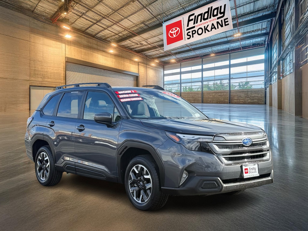 Findlay Downtown Toyota Spokane proudly presents this Subaru Forester with only 1278 miles. All of our cars are hand picked and inspected for your peace of mind. This Forester is equipped with the following options: Power Rear Gate & Blind Spot Detection w/RCTA (Automatic Emergency Steering, Blind-Spot Detection (BSD)/RCTA System, and Power Rear Gate), 4-Wheel Disc Brakes, 6 Speakers, ABS brakes, Air Conditioning, Alloy wheels, AM/FM radio: SiriusXM with 360L, Anti-whiplash front head restraints, Auto High-beam Headlights, Auto-Dimming Exterior Mirror w/Approach Light, Auto-Dimming Mirror w/Compass & HomeLink, Automatic temperature control, Brake assist, Bumpers: body-color, Cargo Tray, Driver door bin, Driver vanity mirror, Dual front impact airbags, Dual front side impact airbags, Electronic Stability Control, Emergency communication system: MySubaru Safety (3-year free trial), Exterior Parking Camera Rear, Four wheel independent suspension, Front anti-roll bar, Front Bucket Seats, Front Center Armrest, Front dual zone A/C, Front fog lights, Front reading lights, Fully automatic headlights, Heated door mirrors, Heated Front Bucket Seats, Heated front seats, Illuminated entry, Knee airbag, Leather steering wheel, Low tire pressure warning, Occupant sensing airbag, Outside temperature display, Overhead airbag, Overhead console, Panic alarm, Passenger door bin, Passenger vanity mirror, Power door mirrors, Power driver seat, Power moonroof: Panoramic, Power steering, Power windows, Premium Textured Cloth Upholstery, Radio data system, Radio: Subaru 11.6" Multimedia Plus System, Rear anti-roll bar, Rear seat center armrest, Rear window defroster, Rear window wiper, Remote keyless entry, Security system, Speed control, Speed-sensing steering, Split folding rear seat, Spoiler, Steering wheel mounted audio controls, Tachometer, Telescoping steering wheel, Tilt steering wheel, Traction control, Trip computer, Variably intermittent wipers, and Wheels: 17" x 7.0 J Dark Metallic Aluminum-Alloy.