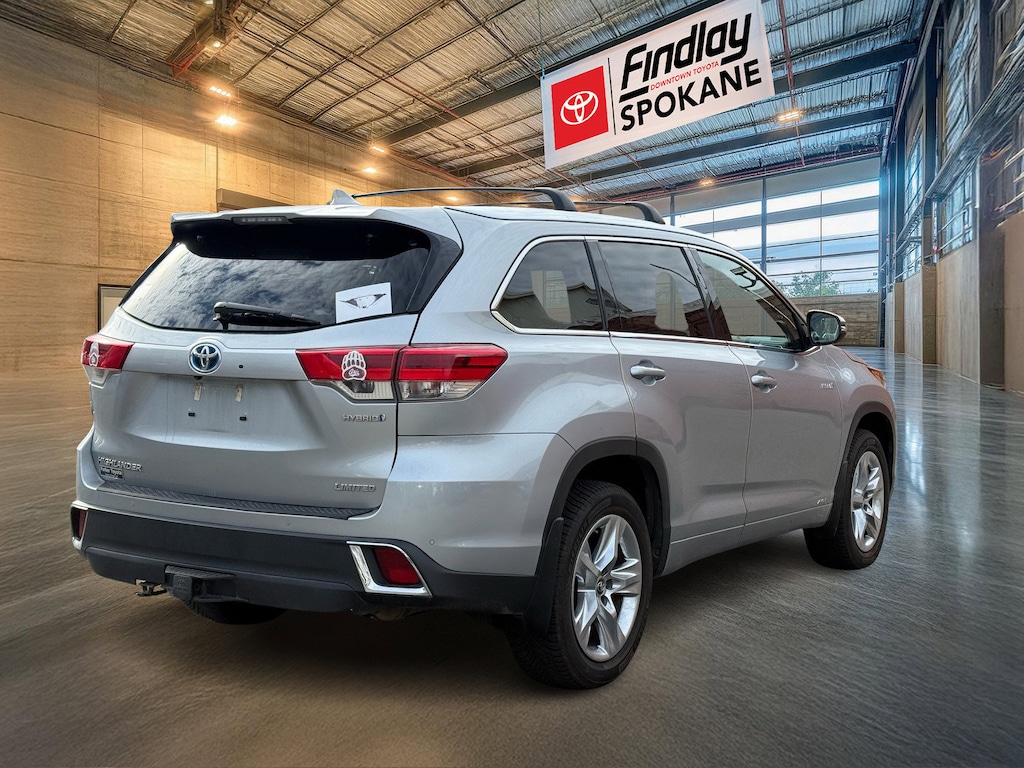 Findlay Downtown Toyota Spokane proudly presents this Toyota Highlander Hybrid with only 76670 miles. All of our cars are hand picked and inspected for your peace of mind. This Highlander Hybrid is equipped with the following options: Toyota Silver Certified Certified, 3.5L V6 DOHC 24V, ABS brakes, Active Cruise Control, Alloy wheels, Electronic Stability Control, Front dual zone A/C, Heated door mirrors, Heated front seats, Heated/Ventilated Front Bucket Seats, Illuminated entry, Low tire pressure warning, Navigation System, Perforated Leather Seat Trim, Power Liftgate, Power moonroof, Remote keyless entry, Traction control, 12 Speakers, 3.542 Axle Ratio, 3rd row seats: split-bench, 4-Wheel Disc Brakes, Air Conditioning, AM/FM radio: SiriusXM, Auto High-beam Headlights, Auto-dimming Rear-View mirror, Automatic temperature control, Brake assist, Bumpers: body-color, CD player, Delay-off headlights, Driver door bin, Driver vanity mirror, Dual front impact airbags, Dual front side impact airbags, Exterior Parking Camera Rear, Four wheel independent suspension, Front anti-roll bar, Front Bucket Seats, Front Center Armrest, Front fog lights, Front reading lights, Fully automatic headlights, Garage door transmitter: HomeLink, Knee airbag, Leather Shift Knob, Memory seat, Occupant sensing airbag, Outside temperature display, Overhead airbag, Overhead console, Panic alarm, Passenger door bin, Passenger vanity mirror, Power door mirrors, Power driver seat, Power passenger seat, Power steering, Power windows, Radio: Entune Premium JBL Audio w/Nav & App Suite, Rear air conditioning, Rear anti-roll bar, Rear Parking Sensors, Rear reading lights, Rear window defroster, Rear window wiper, Reclining 3rd row seat, Roof rack: rails only, Security system, Speed control, Speed-sensing steering, Split folding rear seat, Spoiler, Steering wheel mounted audio controls, Telescoping steering wheel, Tilt steering wheel, Trip computer, Turn signal indicator mirrors, Variably intermittent wipers, Ventilated front seats, and Wheels: 19" 5-Spoke Chromtec Alloy.