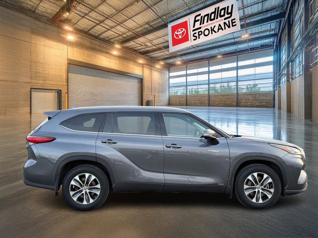 Findlay Downtown Toyota Spokane proudly presents this Toyota Highlander Hybrid with only 132000 miles. All of our cars are hand picked and inspected for your peace of mind. This Highlander Hybrid is equipped with the following options: 2.5L I4 PDI Hybrid DOHC 16V LEV3-SULEV30 186hp, 3.542 Axle Ratio, 3rd row seats: split-bench, 4-Wheel Disc Brakes, 6 Speakers, ABS brakes, Air Conditioning, Alloy wheels, AM/FM radio: SiriusXM, Apple CarPlay/Android Auto, Auto High-beam Headlights, Auto-dimming Rear-View mirror, Automatic temperature control, Brake assist, Bumpers: body-color, Delay-off headlights, Driver door bin, Driver vanity mirror, Dual front impact airbags, Dual front side impact airbags, Electronic Stability Control, Emergency communication system: Safety Connect with 1-year trial, Exterior Parking Camera Rear, Four wheel independent suspension, Front anti-roll bar, Front Bucket Seats, Front Center Armrest, Front dual zone A/C, Front fog lights, Front reading lights, Fully automatic headlights, Garage door transmitter: HomeLink, Heated door mirrors, Heated Front Bucket Seats, Heated front seats, Illuminated entry, Knee airbag, Leather Shift Knob, Low tire pressure warning, Occupant sensing airbag, Outside temperature display, Overhead airbag, Overhead console, Panic alarm, Passenger door bin, Passenger vanity mirror, Power door mirrors, Power driver seat, Power Liftgate, Power moonroof, Power passenger seat, Power steering, Power windows, Radio: Audio Plus (T1 Hi), Rear air conditioning, Rear anti-roll bar, Rear reading lights, Rear window defroster, Rear window wiper, Reclining 3rd row seat, Remote keyless entry, Roof rack: rails only, Security system, SofTex Seat Trim, Speed control, Speed-sensing steering, Split folding rear seat, Spoiler, Steering wheel mounted audio controls, Telescoping steering wheel, Tilt steering wheel, Traction control, Trip computer, Turn signal indicator mirrors, Variably intermittent wipers, and Wheels: 18" Machined-Finish Alloy.