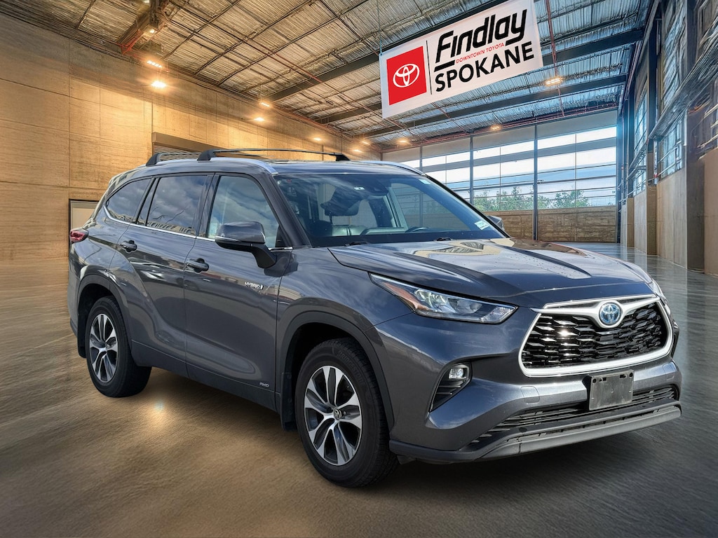 Findlay Downtown Toyota Spokane proudly presents this Toyota Highlander Hybrid with only 65647 miles. All of our cars are hand picked and inspected for your peace of mind. This Highlander Hybrid is equipped with the following options: Toyota Gold Certified Certified, 2.5L I4 PDI Hybrid DOHC 16V LEV3-SULEV30 186hp, 3.542 Axle Ratio, 3rd row seats: split-bench, 4-Wheel Disc Brakes, 6 Speakers, ABS brakes, Air Conditioning, Alloy wheels, AM/FM radio: SiriusXM, Apple CarPlay/Android Auto, Auto High-beam Headlights, Auto-dimming Rear-View mirror, Automatic temperature control, Brake assist, Bumpers: body-color, Delay-off headlights, Driver door bin, Driver vanity mirror, Dual front impact airbags, Dual front side impact airbags, Electronic Stability Control, Emergency communication system: Safety Connect with 1-year trial, Exterior Parking Camera Rear, Four wheel independent suspension, Front anti-roll bar, Front Bucket Seats, Front Center Armrest, Front dual zone A/C, Front fog lights, Front reading lights, Fully automatic headlights, Garage door transmitter: HomeLink, Heated door mirrors, Heated Front Bucket Seats, Heated front seats, Illuminated entry, Knee airbag, Leather Shift Knob, Low tire pressure warning, Occupant sensing airbag, Outside temperature display, Overhead airbag, Overhead console, Panic alarm, Passenger door bin, Passenger vanity mirror, Power door mirrors, Power driver seat, Power Liftgate, Power moonroof, Power passenger seat, Power steering, Power windows, Radio: Audio Plus (T1 Hi), Rear air conditioning, Rear anti-roll bar, Rear reading lights, Rear window defroster, Rear window wiper, Reclining 3rd row seat, Remote keyless entry, Roof rack: rails only, Security system, SofTex Seat Trim, Speed control, Speed-sensing steering, Split folding rear seat, Spoiler, Steering wheel mounted audio controls, Telescoping steering wheel, Tilt steering wheel, Traction control, Trip computer, Turn signal indicator mirrors, Variably intermittent wipers, and Wheels: 18" Machined-Finish Alloy.