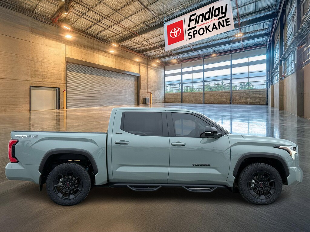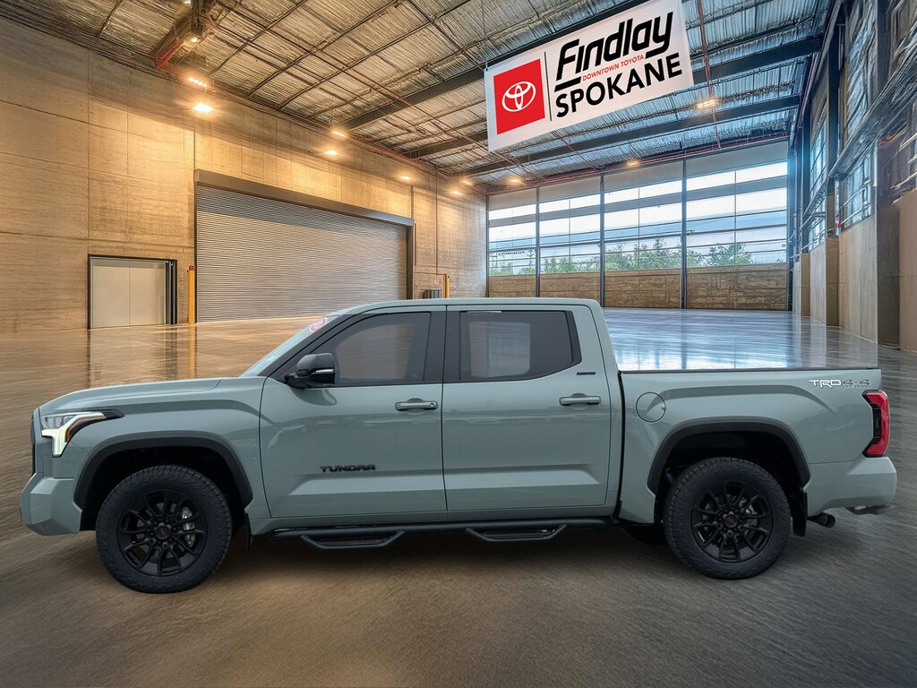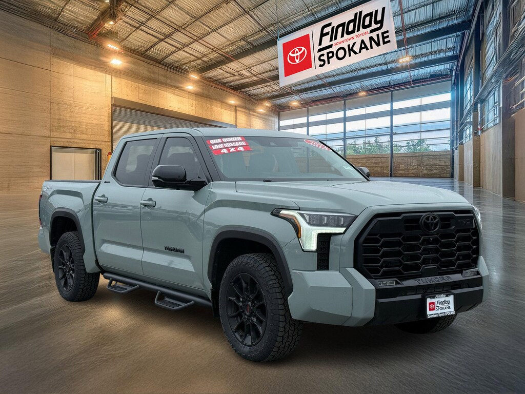 Findlay Downtown Toyota Spokane proudly presents this Toyota Tundra with only 22310 miles. All of our cars are hand picked and inspected for your peace of mind. This Tundra is equipped with the following options: 4WD, Black w/SofTex Seat Trim, ABS brakes, Active Cruise Control, Alloy wheels, Electronic Stability Control, Front dual zone A/C, Heated door mirrors, Heated front seats, Illuminated entry, Low tire pressure warning, Navigation System, Remote keyless entry, Traction control, 20" Alloy Wheels, 3.31 Axle Ratio, 4-Wheel Disc Brakes, 8-Way Pwr Adjustable Heated/Ventilated Front Seats, 9 Speakers, Air Conditioning, AM/FM radio: SiriusXM, Apple CarPlay/Android Auto, Auto High-beam Headlights, Auto-dimming door mirrors, Auto-dimming Rear-View mirror, Automatic temperature control, Brake assist, Bumpers: body-color, Delay-off headlights, Driver door bin, Driver vanity mirror, Dual front impact airbags, Dual front side impact airbags, Emergency communication system: Safety Connect (10-year trial), Exterior Parking Camera Rear, Front anti-roll bar, Front Bucket Seats, Front Center Armrest, Front fog lights, Front reading lights, Front wheel independent suspension, Fully automatic headlights, Garage door transmitter: HomeLink, Knee airbag, Leather Shift Knob, Memory seat, Occupant sensing airbag, Outside temperature display, Overhead airbag, Overhead console, Panic alarm, Passenger door bin, Passenger vanity mirror, Power door mirrors, Power driver seat, Power passenger seat, Power steering, Power windows, Radio data system, Radio: Audio Multimedia System, Rear reading lights, Rear seat center armrest, Rear step bumper, Rear window defroster, Safety Connect, Security system, SofTex Seat Trim, Speed control, Speed-sensing steering, Split folding rear seat, Steering wheel mounted audio controls, Tachometer, Telescoping steering wheel, Tilt steering wheel, Trip computer, Turn signal indicator mirrors, Variably intermittent wipers, Ventilated front seats, and Voltmeter.